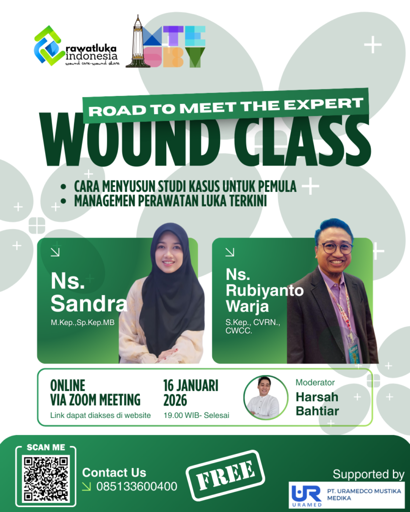 Diselenggarakan oleh Rawat Luka Indonesia, kelas ini menghadirkan narasumber berpengalaman di bidang perawatan luka kronis, studi kasus klinis, dan praktik berbasis evidence-based nursing