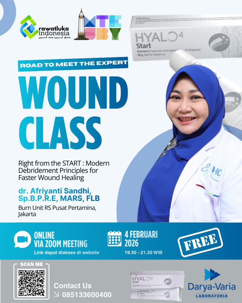 Rawat Luka Indonesia kembali menghadirkan program edukasi unggulan Wound Class: Right from the START – Modern Debridement Principles for Faster Wound Healing, sebuah kelas online yang dirancang khusus bagi tenaga kesehatan yang ingin memperdalam kompetensi perawatan luka modern berbasis praktik klinis terkini.