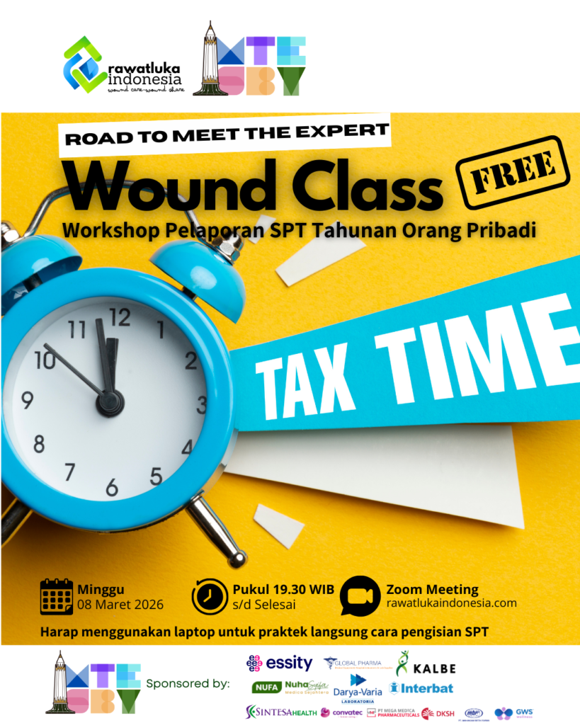 Praktisi perawatan luka yang menjalankan praktek mandiri wajib memahami cara lapor SPT Tahunan Orang Pribadi dengan benar. Ikuti Workshop Wound Class – Road to Meet The Expert untuk belajar langsung cara pengisian SPT bagi tenaga kesehatan/praktisi luka, mulai dari pencatatan penghasilan hingga pelaporan pajak secara praktis. Kelas ini GRATIS, dilakukan secara online melalui Zoom, dan dilengkapi praktek langsung pengisian SPT menggunakan laptop.